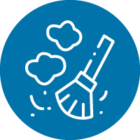 Fjerner synlig støv og skitt fra bolig og anlegg